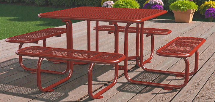 • Kombinace kovového stolu čtvercového se 4 kovovými lavicemi bez opěradel
